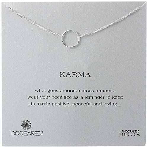 -. Binding : Jewelry -. Brand : Dogeared -. Department : womens -. Feature : Double-chain necklace with circular ring pendant and keepsake card / SP.R.Ing-ring clasp / Items that are handmade may vary in size, shape and color / Made in the USA -. Label : Dogeared -. Manufacturer : Dogeared -. Model : K1SS100101020-Parent -. MPN : K1SS100101020-Parent -. PartNumber : K1SS100101020-Parent -. ProductGroup : Jewelry -. ProductTypeName : FASHIONNECKLACEBRACELETANKLET -. Publisher : Dogeared -. Studio : Dogeared -. Title : Dogeared Karma Double Chain Necklace, 16"