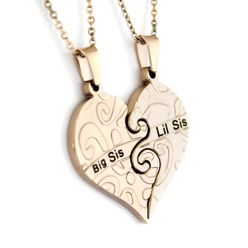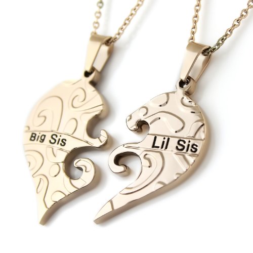 -. Title : Sister Necklace Big Sis Lil Sis Heart Sisters Pendant Set (2pcs), Perfect Sister gift 18" Chains Included