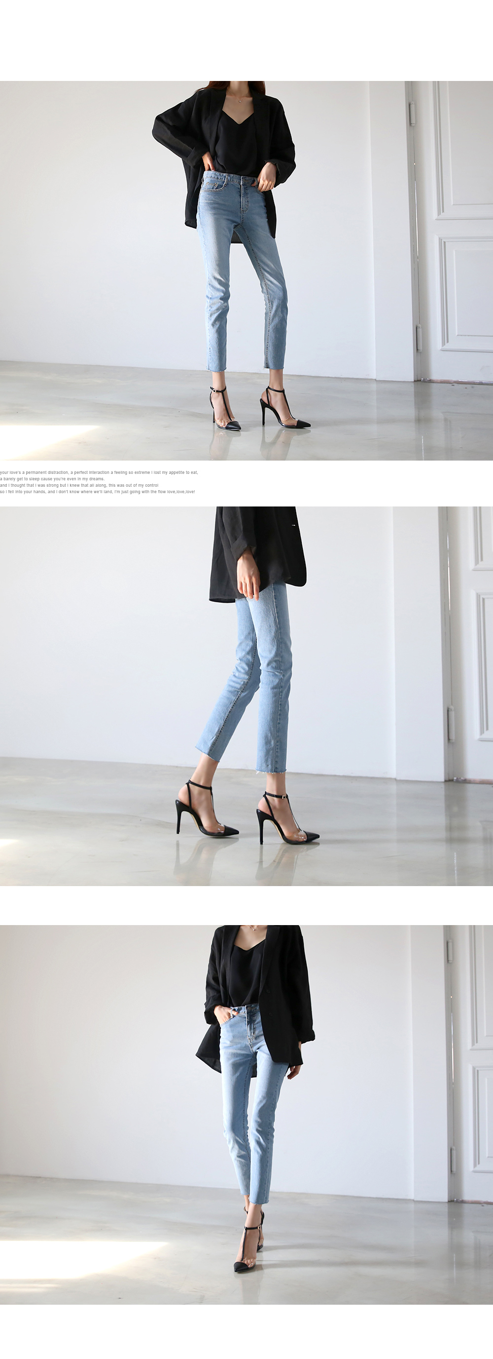 발목이 드러나는 바텀이나 풀스커트를 매치하여 세련된 아웃핏을 연출하기 좋습니다.