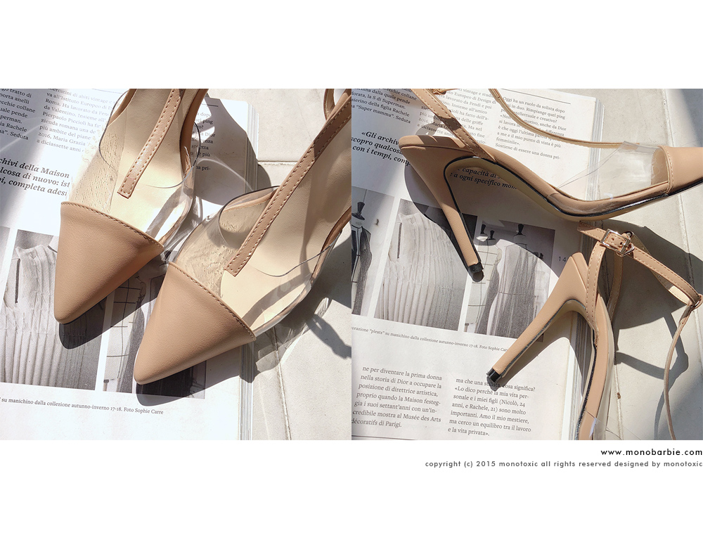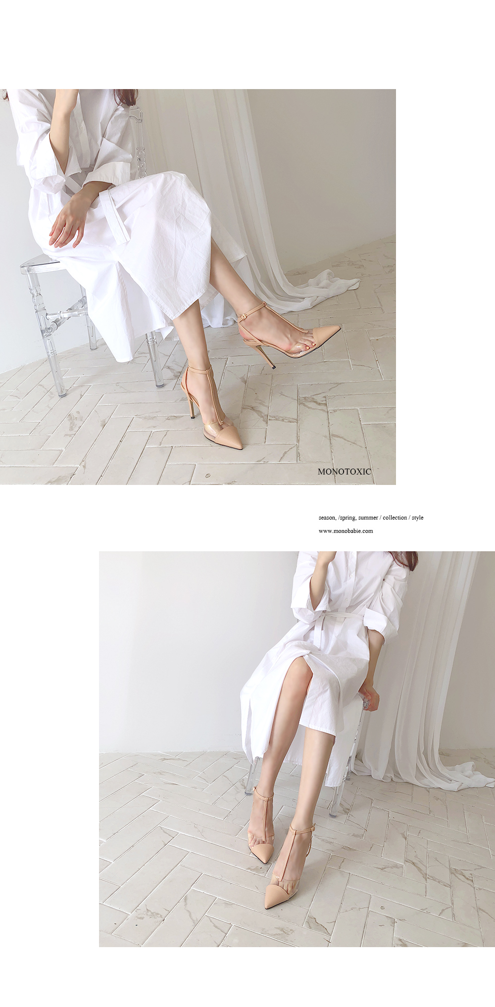 바디와 동일한 컬러의 캡토와 pvc소재가 더해져 트렌디한 느낌이 느껴지고 얇은 t스트랩은 발목을 감싸줍니다.