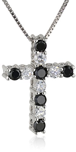-. Title : Sterling Silver Black and White Cubic Zirconia Cross Pendant Necklace, 18"