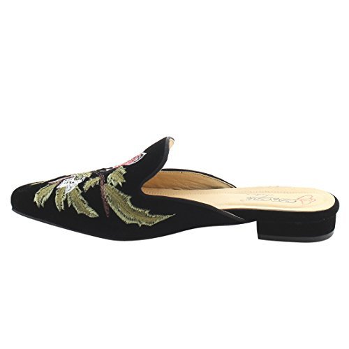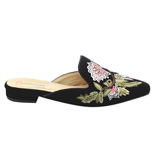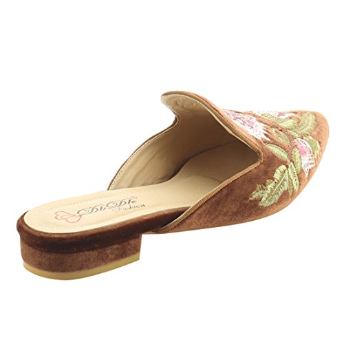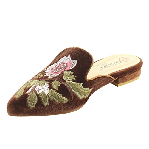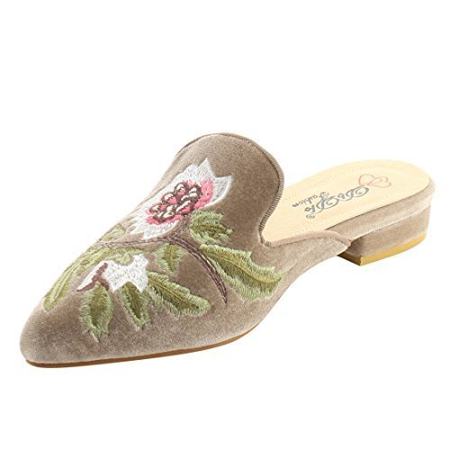 DBDK AG88 Women's Chic Backless Slip On Embroidery Mule Flats