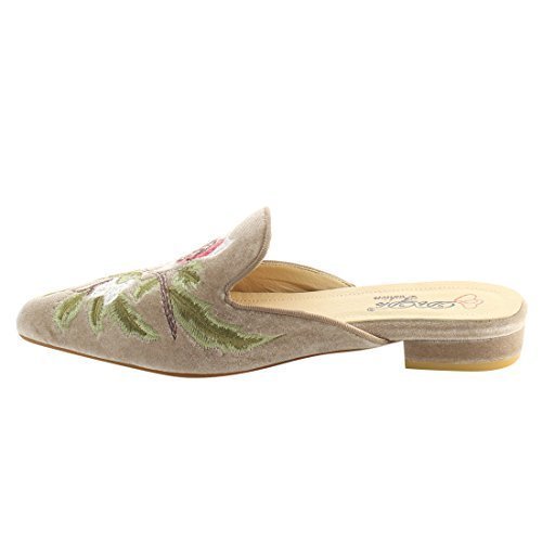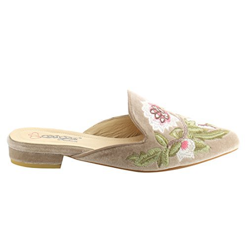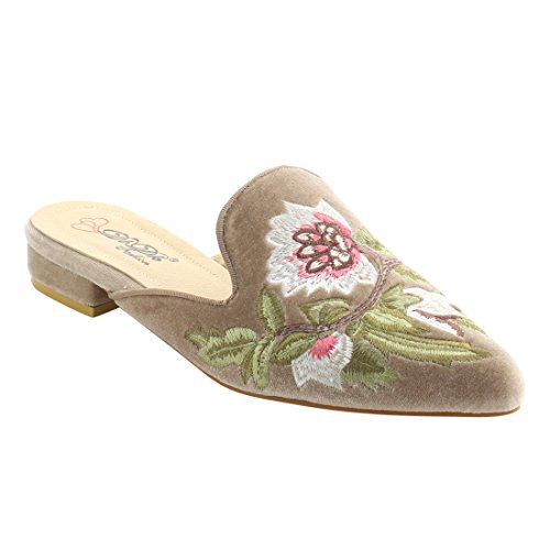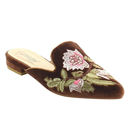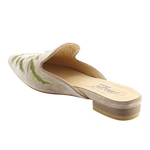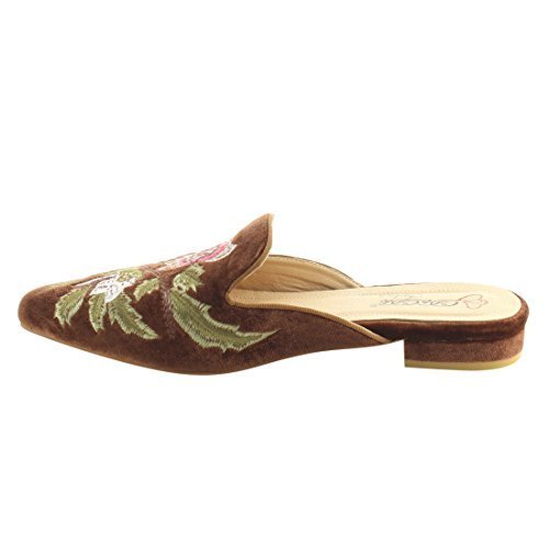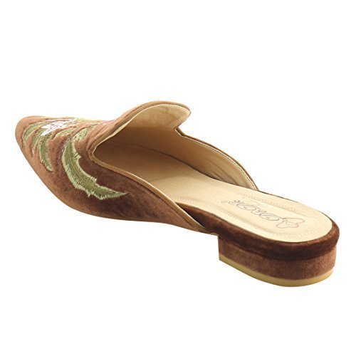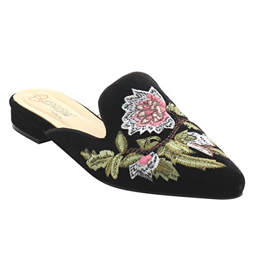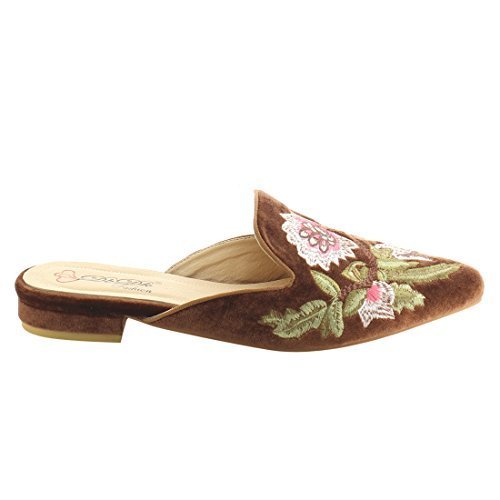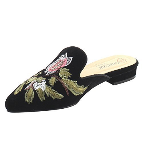 Product DescriptionFeaturing velvet upper,pointed toe front,backless design,and cushioned footbed.Finished with decorative embroidery at upper.0