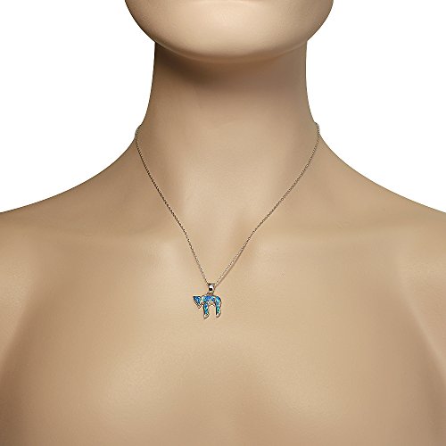 -. Title : 925 Sterling Silver Blue Simulated Opal Turquoise-Tone Jewish Chai Living Charm Pendant Necklace