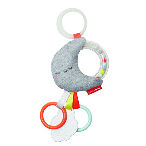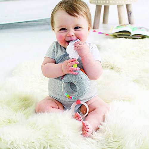 Baby will be over the moon for this sweet stroller toy. Our sleepy moon friend features neon rattle beads to stimulate baby's auditory and visual senses. With a textured, cloud-shaped teether and sweet embroidered details, it's sure to be one of your little's one go-to baby toys. Like all our stroller toys, it has a built-in loop so you can easily attach it to the bar of your stroller, infant carrier or other gear. Product Features: Ages 0m+ Plush, moon-shaped stroller toy offers on-the-go fun Neon rattle beads stimulate baby's auditory and visual senses Includes textured, cloud-shaped teether Coordinates with Silver Lining Cloud collection PVC-free, Phthalate-free Size (inches): 4.25l x 1.5w x 8h; (cm): 11l x 4w x 20hFeature