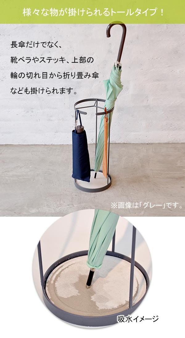 傘から滴る水滴を珪藻土が吸い取って蒸発させるので、床に水が垂れることなく衛生的。ワイヤー製の無駄のないシンプルなフォルム。デザイン性と機能性を兼ね備えた傘立てです。 |