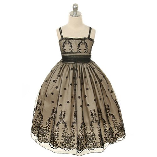 A beautiful Christmas dress for your toddler or little girl by Kids Dream. This double strapped dress has an elegant empire waist with sheer tulle and floral flocking design. French mesh overlay over colored lining. The perfect dress for this Christmas or other special occasion.