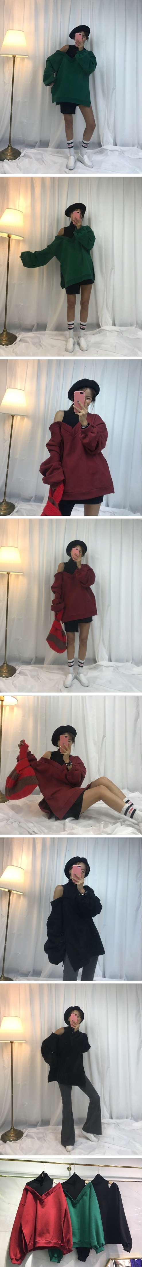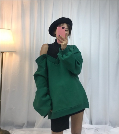 Women`s Asymmetric Shoulder Sweatshirts Black Burgundy Green