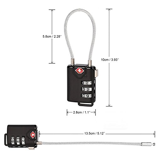 - √ TOUGH and DURABLE - Our locks are thickened by extra durable zinc alloy which endures heavy pounding. The cable pillars are made from high grade hardened steel which does not deform or break even under smashing. The cable is braided tightly with steel strings. It is thin enough to thread through most zippers and lock holes, while tough enough to protect your belongs.