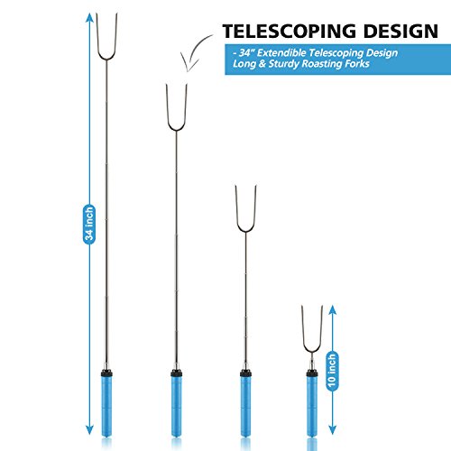 Marshmallow Roasting Sticks, Set Of 5 ,34 Inch Extendable Rotating Telescoping Forks for Hot Dog & Smores , Camping, Bonfire, Fire Pit, Campfire & Safe For Kids