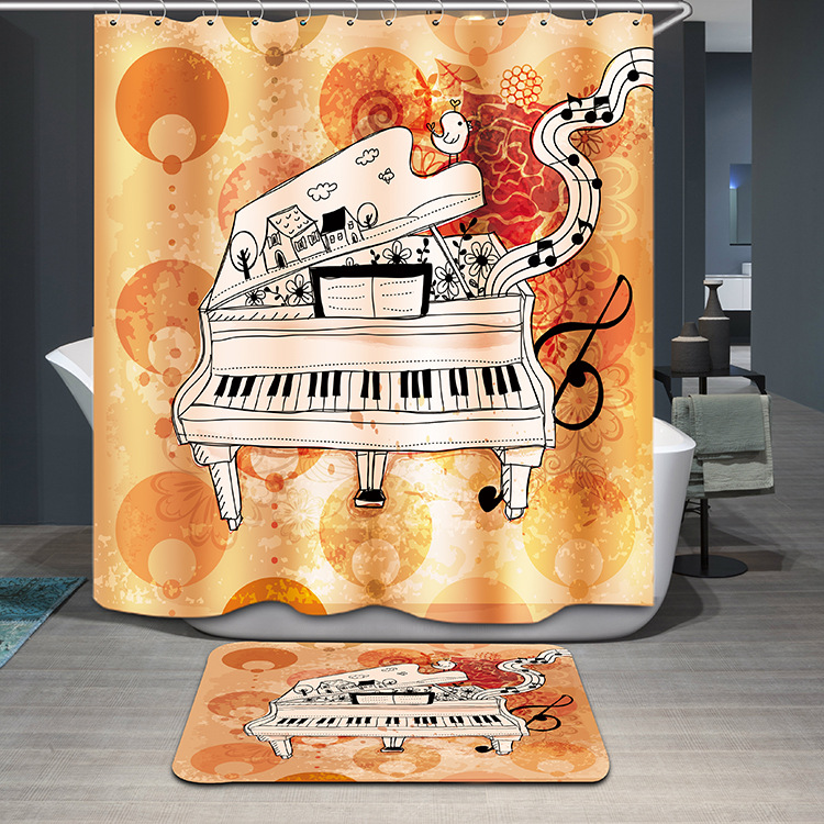 1 x钢琴设计淋浴窗帘(带钩)