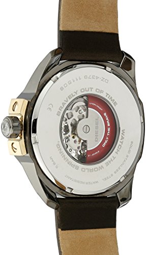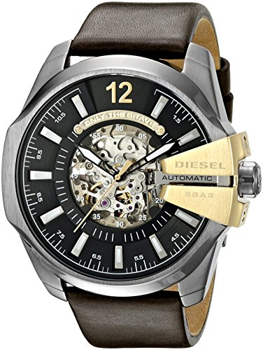 -. Binding : Watch -. Brand : -. Color : Brown -. Department : mens -. EAN : 0698615109289 -. Feature : Round stainless steel watch with black dial featuring oversized chronograph and skeleton center / 53 mm stainless steel case with mineral dial window / Japanese automatic movement with analog display / Leather band with buckle closure / Water resistant to 50 m (165 ft): In general, suitable for short periods of recreational swimming, but not diving or snorkeling -. Label : Watches -. Manufacturer : Watches -. Model : DZ4379 -. MPN : DZ4379 -. PackageQuantity : 1 -. PartNumber : DZ4379 -. ProductGroup : Watch -. ProductTypeName : WATCH -. Publisher : Watches -. Studio : Watches -. Title : Men's DZ4379 Chief Stainless Steel Watch with Black Band -. UPC : 698615109289