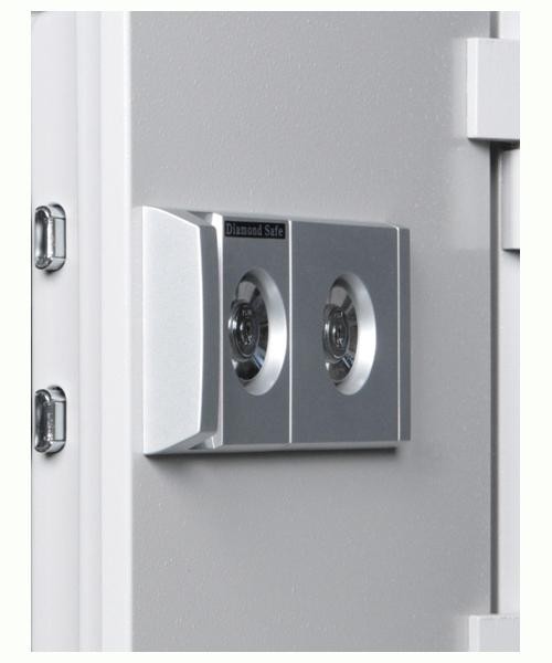 2ヶの鍵穴に、左用、右用のキーを差し込み廻すだけの操作で開閉が出来る便利なシステムです。 |