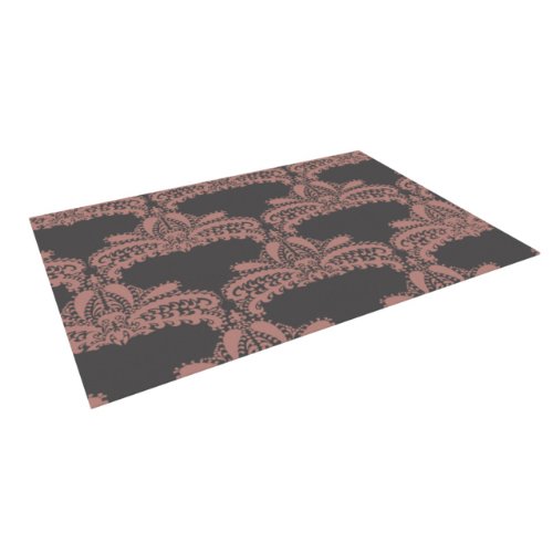 Kess InHouse Nandita Singh "Decorative Motif Pink" Bronze Floral Indoor/Outdoor Floor Mat, 4-Feet by 5-Feet