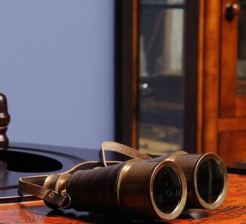 This binocular is made of high quality brass. It comes with antique looking leather overlay & leather strap. The strap fits loosely around your neck. Available in antique brass finish. This is a great item to use while sailing, hunting, or sight seeing. The dimensions are: l: 5.25 Inches, w: 5 inches, h: 2.25 Inches.