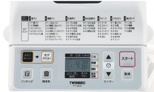 仕様:電源:AC100V 50/60Hz 消費電力:430W(ヒーター400W モーター30W ) 容量:食パンの場合・1.0斤/ 0.5斤 タイマー:13時間(焼き上がりまで) 電源コード長:1.4m 搭載メニューモード:40