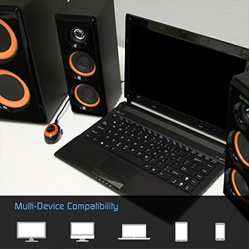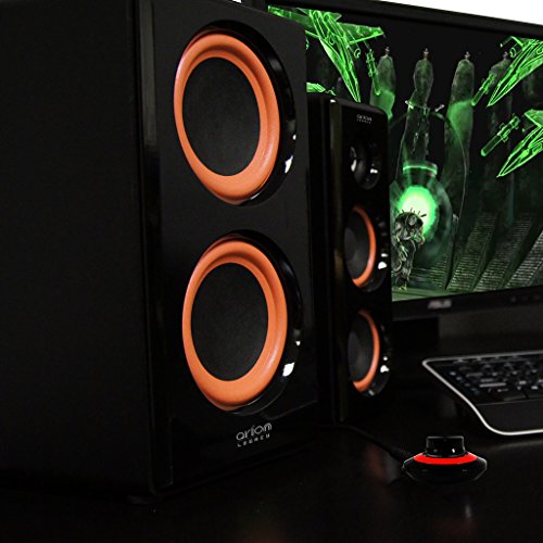 The attached wired remote on the subwoofer unit features an easy-to-use, ergonomic design for your hands. Easily power on/off the system, and adjust volume levels with ease and comfort at your desktop. No more bending over or reaching down to the subs in order to make an adjustment.