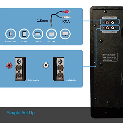 What sets this system apart from its class? While most competitors can only present a two-way speaker wrapped in plastic, the ET-AR506-BK delivers a three-way speaker system equipped with a tweeter, two woofers, and two subwoofers dedicated to reproducing the high, mid, and low frequencies. That means accurate sound across the entire audible spectrum. Vocals will sound like vocals, exploding grenades will sound like exploding grenades, and so on. Hear your music the way it was truly meant to be heard.