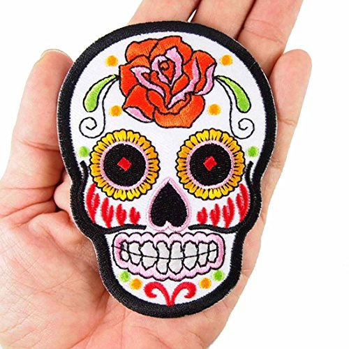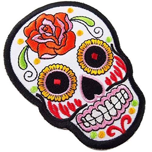White Novelty Iron on Skull Candy Embroidered Patch / Badge Motorcycle Biker WITH FREE GIFT