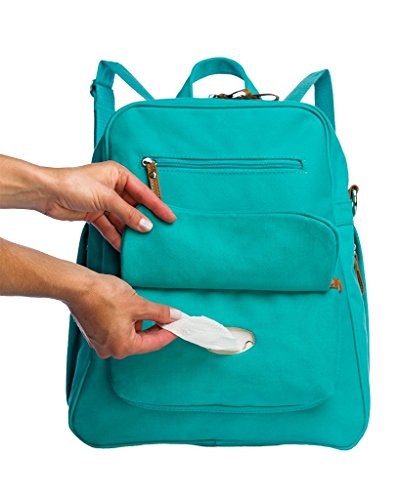 The modern parent's key to survival. The Monroe-on-the-Go Convertible Backpack stands the test of time with an ultra chic structure. Built from durable canvas that has been backed in matte foil for extra water protection, this backpack is ready for outdoor activity. A convertible by nature, carry this bag as a crossbody or backpack with it's easily removable, adjustable strap. Featuring our exclusive built-in wipe system (clean messes in a snap), 2 insulated exterior bottle pockets and 5 organizational pockets throughout- including a padded interior electronics pocket. Just the bag for modern, on-the-go parenting. Spot clean with mild soap, air dry. Do not dry clean.Feature