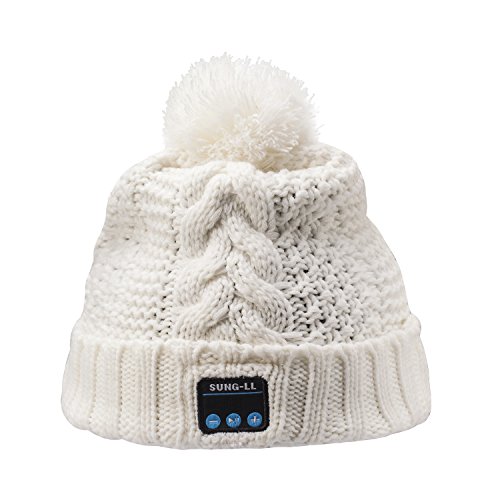Sung-ll Soft and Warm Hat Wireless Beanie with Bluetooth Smart Cap Speaker Micro Headphone (White)