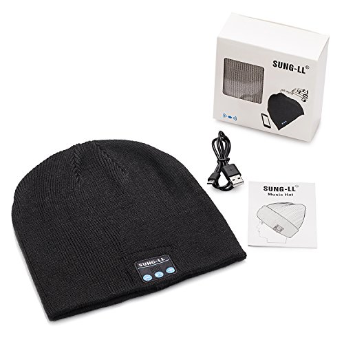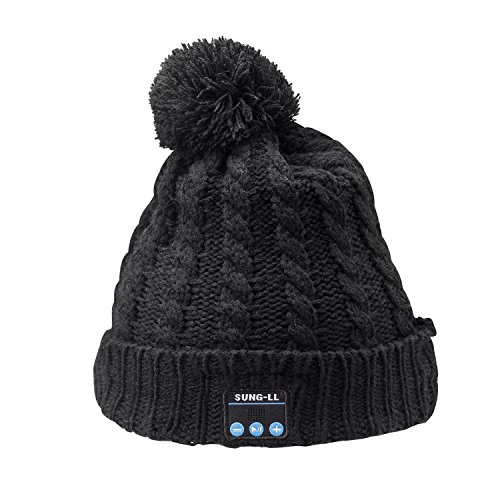 Sung-ll Soft and Warm Hat Wireless Beanie with Bluetooth Smart Cap Speaker Micro Headphone (Black1)