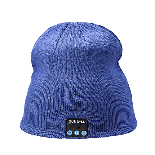 Sung-ll Soft and Warm Hat Wireless Beanie with Bluetooth Smart Cap Speaker Micro Headphone (Blue)