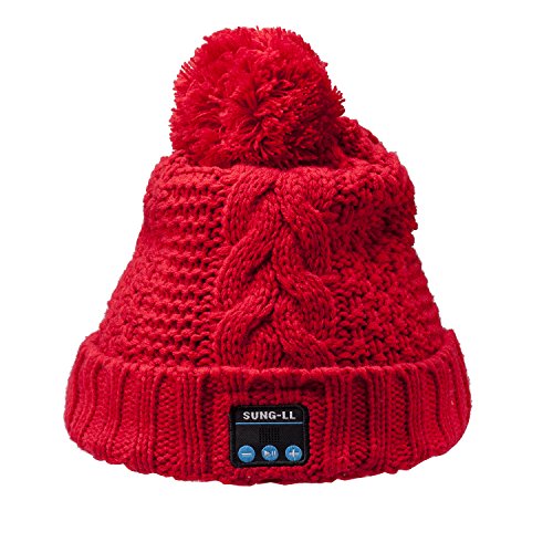 Sung-ll Soft and Warm Hat Wireless Beanie with Bluetooth Smart Cap Speaker Micro Headphone (Red 1)