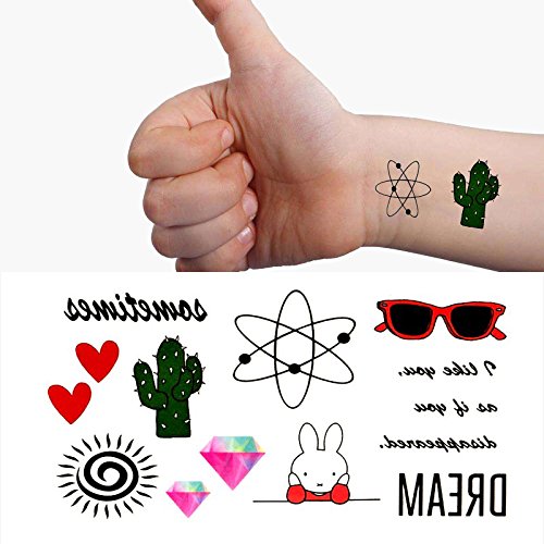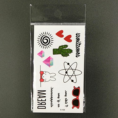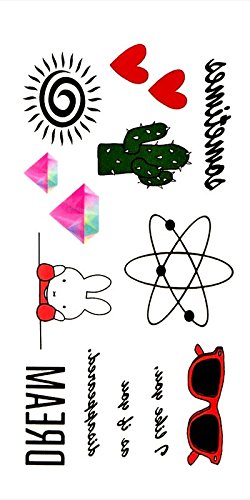 Oottati Small Cute Temporary Tattoo Sunglass Rabbit Heart Diamond Cactus (2 Sheets)