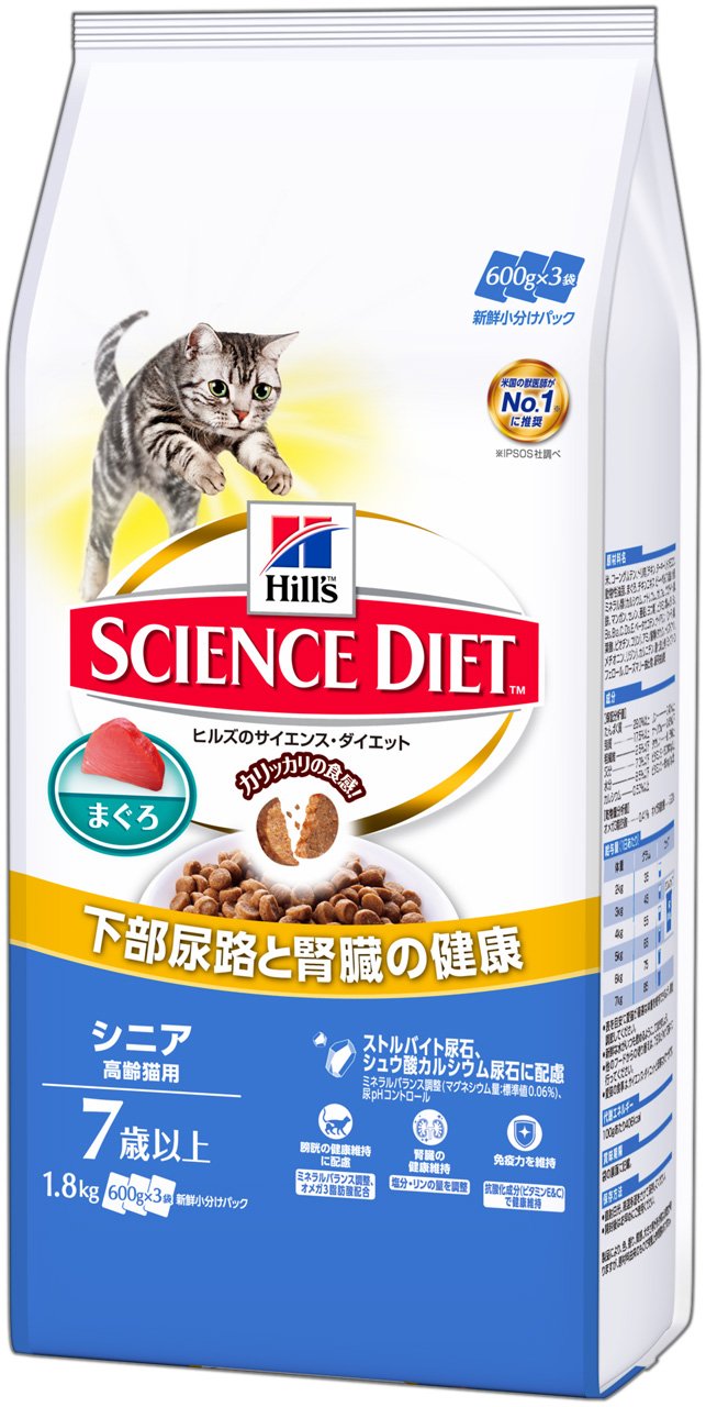 猫が大好きな味を研究。独自の「極上うま味成分」配合レシピで、夢中になるおいしさを実現。食べやすい粒の形にもこだわりました。高品質で消化のよい原材料を使用しているので、必要な栄養素をしっかり吸収。内臓の健康を維持し、良好な便の状態を保ちます。必須アミノ酸を十分に含む高品質な蛋白質と適切な量のミネラル類が、健康な歯、骨、筋肉の維持をサポートします。科学的に証明された抗酸化成分が高齢猫の健康を維持し、本来の免疫力を保ちます。健康な皮膚と輝く毛艶の維持に欠かせない成分であるオメガ3&6脂肪酸を、適切なバランスで配合しています。高齢猫の健康に欠かせない成分であるタウリンを十分に含み、心臓と目の健康維持をサポートします。製品の酸化を防ぐため、自然派の成分であるミックストコフェロール(ビタミンE)、ローズマリー抽出物などを使用しています。着色料は使用していません。
