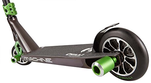 -. Binding : Misc. -. Brand : Chilli Pro Scooters -. Department : mens -. Feature : Brand-new authentic merchandise. / Authorized dealer-warranty is valid. / Deck 6061 aluminium (52 x 11cm) NEW t-bar 4130 CrMo steel (60 x 58cm) 1-pcs CNC forged 6061 aluminium / 3-bolts clamp CNC 7003 aluminium 120 mm spoke wheels, handcusted CNC core, abec 9 bearings, 90A flex brake HIC system / The Chilli Pro Team, a perfect all round street star for beginners and also suitable for pros. -. Label : Chilli Pro Scooters -. Manufacturer : Chilli Pro Scooters -. ProductGroup : Sports -. ProductTypeName : SPORTING_GOODS -. Publisher : Chilli Pro Scooters -. Studio : Chilli Pro Scooters -. Title : Chilli Pro Scooters Machine Complete
