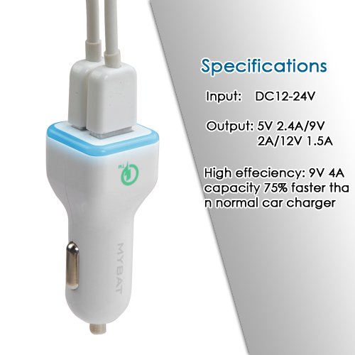 Studio : Cell Accessories For Less (TM) Publisher : Cell Accessories For Less (TM) Binding : Wireless Phone Accessory Product Description Cell Accessories For Less (TM) SPECIFICATIONQualcomm Quick Charge 2.0 Class A technology 5/9/12VDual USB ports support Quick Charge 2.0 charging TechnologyOver-current, overcharging and overheating protectionSmart IC for charging all devices without Quick Charge 2.0 at normal speedFEATUREQuick Charge 2.0 delivers up to 75% faster charging vs. conventional USB charging.Input: DC 12-24VOutput: 5V 2.4A/9V 2A/12V 1.5A, Max. 36WCompatible models: Samsung Galaxy S6/S6 Edge , Note5, Note4/Edge,LGV10, G4, G Flex2 and moreCell phones and accessories have become one of the most crucial personal technology purchases. If you don't know which cell phone, iPhone case, or Bluetooth headset to buy, we are here to help. The Target Buys is the perfect one-stop shop for a cell phones, cases, cell phone chargers, cell phone batteries and other accessories. You can choose a smartphone from brands like Samsung, Apple, Amazon Fire, LG, Blackberry, Motorola, Nokia, HTC, Kyocera, ASUS, ZTE, Blu, Sony, Pantech, and Casio. In accessories you have the option to choose from brands like OtterBox, Jawbone, Speck, iOttie, Jabra, Jaybird, and Plantronics. With The Target Buyst you're sure to end up with great accessories. You also have the choice of selecting accessories made for major providers like ATT, Verizon, Sprint, T-Mobile, Virgin Mobile, Boost Mobile, MetroPCS, Net10, Sprint Prepaid, Cricket and US Cellular. The Target Buys shoppers also have the option to upgrade their cell accessories to existing ATT, Verizon and Sprint devices. You can find the most popular cell phones,browse smartphones by brand, and even search for popular cell phone accessories. Whatever cell phone or accessory you're looking for The Target Buys has the perfect item at the right price.**DISCLAIMER - Most of our accessories are high quality brand new aftermarket products to specification. We make no claim of association or affiliation to Apple, Nokia, Ericsson, Motorola, Nextel, Samsung, Sanyo, Kyocera or any other 0