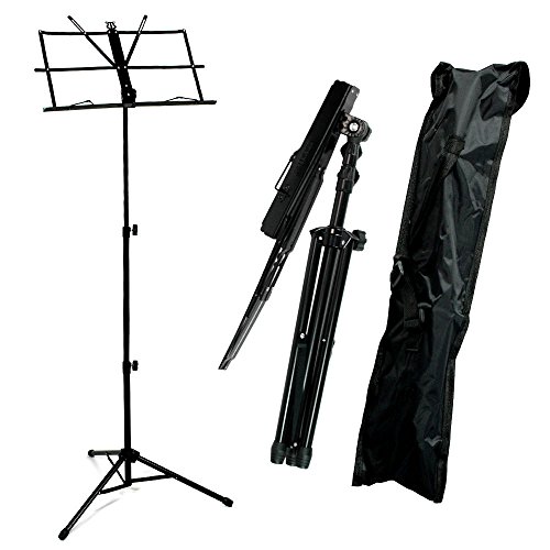 -. Brand : Unbranded* -. EAN : 0736557517646 -. Feature : Package Includes : (1) Folding Music Stand , (1) Carrying Bag / The two tier adjustable vertical shaft, and tilting bookplate makes stable stand for sitting and standing. Adjustable Folding Music Stand will supports you to have the perfect performance that you ever had. / Features: Color : Black Stand Height : 20" - Max 46" Can be folded up to a small 22" compact size for easy carrying / Made of durable steel and plastic Comes with a carry bag 11.5" x 20" Bookplate tilts and fully adjustable -. Label : NA -. Manufacturer : NA -. MPN : EYSTSRF15 -. PackageQuantity : 1 -. PartNumber : EYSTSRF15 -. ProductGroup : Musical Instruments -. ProductTypeName : INSTRUMENT_PARTS_AND_ACCESSORIES -. Publisher : NA -. Studio : NA -. Title : Adjustable Folding Sheet Music Stand Score Holder Mount Tripod Carrying Bag -. UPC : 736557517646