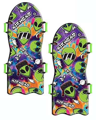 Studio : AirHead Publisher : AirHead Binding : Misc. Product Description 1 rider can ride head first or 2 riders can sit up for a more comfortable ride. Durable PE foam construction with high density and slick bottom for speed. Four soft EVA handles for a great grip. Advanced shape for enhanced control. Pack includes 2 sleds 0