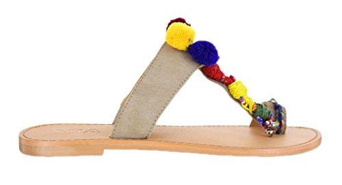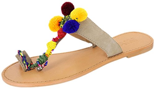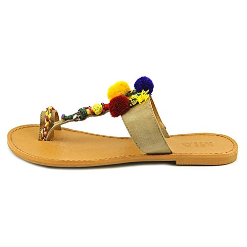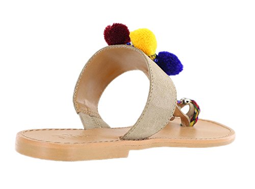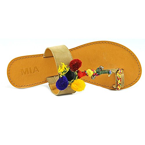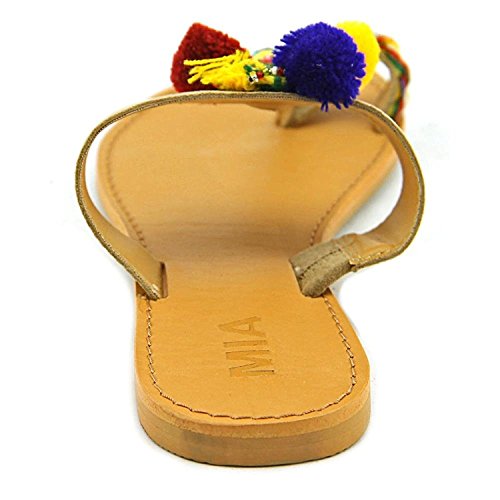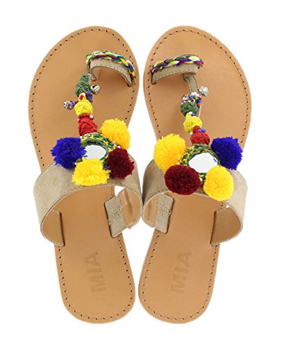 MIA Women's Dulcia Pom Bohemian Colorful Boho Slip On Flip Flop Sandal