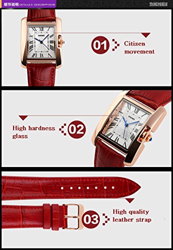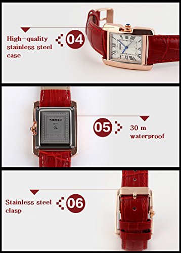 -. Binding : Watch -. Brand : Gosasa -. Department : womens -. EAN : 0606860200118 -. Feature : Rectangle case fashion watch white dial with featuring roman numeral hour marks and vintage blue metalic hands / Women's red leather watch band and rose gold case with safety buckle,no any hurt of your clothes or hands / JAPAN quartz movement with Genuine Leather Band. / WATER RESISTANT to 99 feet (30M). Withstands rain and splashes of Water but not for showering or swimming. / Luxury simple design watch,perfect gift for women -. Label : Gosasa -. Manufacturer : Gosasa -. MPN : SK1085R -. PackageQuantity : 1 -. PartNumber : SK1085R -. ProductGroup : Watch -. ProductTypeName : WATCH -. Publisher : Gosasa -. Studio : Gosasa -. Title : Gosasa Womens Classic Design Watches Rose Gold Case Roman Numeral Luxury Wristwatch Red Leather Strap Watch -. UPC : 606860200118