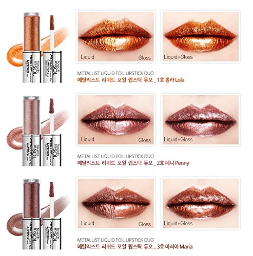 -. Binding : Misc. -. Brand : Touch in Sol -. Color : Total 7 Colors SET -. EAN : 8806724003684 -. Feature : [Touch In Sol] Metallist Liquid Foil Lipstick Duo / An innovative, dual-ended lipstick, featuring a rich metallic matte shade and matching glitter gloss for a buildable, bold lip look. / Create ultra-rich, heavy metal lips with a lush, creamy, matte metallic liquid color on one side and the perfect matching glittering gloss on the other. The hottest trend for lips is high impact metallic color, topped with some serious glitter. Designed with Korean technology to be ly creamy and super long-wearing, it leaves lips with major metal with color and glitter. / Go with sassy shimmer in a single coat of glittering gloss, or go for the bold with a single swipe of the velvety, metallic liquid color. Amp up your look when you layer the complementary glitter on top of the matte metallic gloss for the ultimate, liquid foil lip look. / Made in Korea -. IsAdultProduct : 0 -. Label : Touch In Sol -. Manufacturer : Touch In Sol -. MPN : BizAU_430 -. PartNumber : BizAU_430 -. ProductGroup : Beauty -. ProductTypeName : BEAUTY -. Publisher : Touch In Sol -. Studio : Touch In Sol -. Title : [Touch In Sol] Metallist Liquid Foil Lipstick Duo (Total 7 Colors Set) /Bold Lip Gloss, Vivid Metallic Shimmer Color Lip Gloss