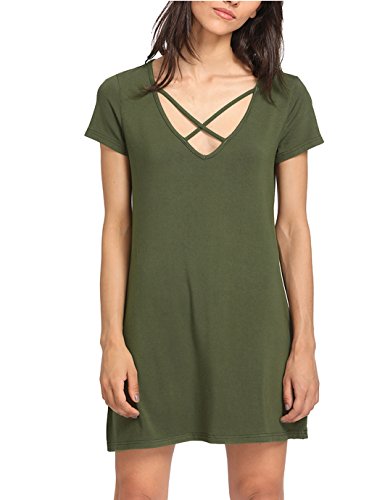 Casual V neck short t-shirt dresses, above knee high, design for Petite Women(weight:80lbs-150lbs, height:5'2"-5'9")