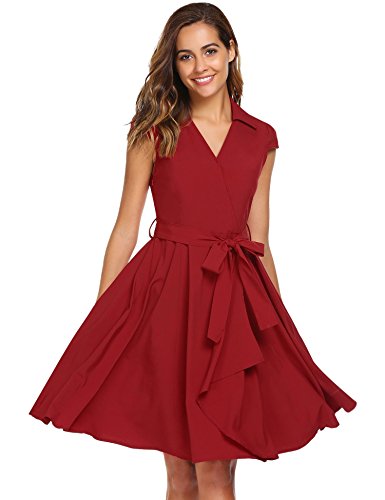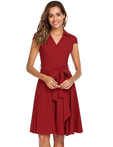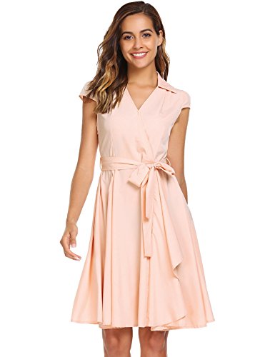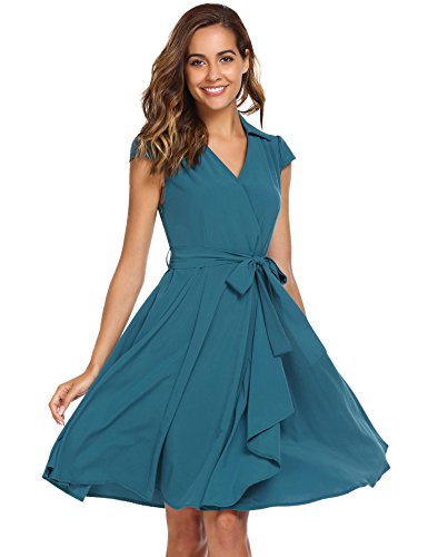 Women's Wrap Dresses with V-neck Cap Sleeve, And have 2 Buttons to Keep the Front Sides of the Dress in Place, and also Can Stayed Closed with the Belt, can Ensure the Security