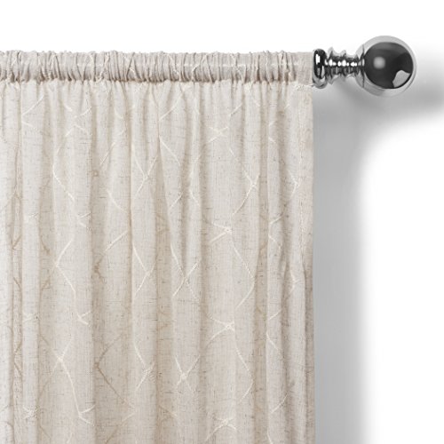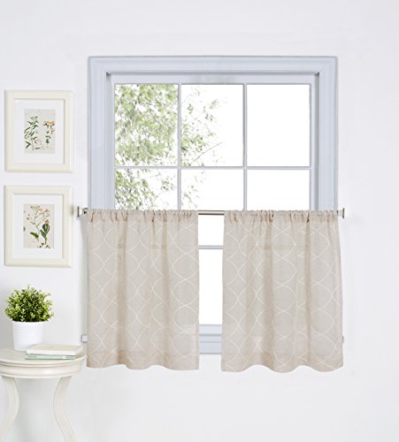 Studio : Elrene Home Fashions Publisher : Elrene Home Fashions Binding : Kitchen Product Description Rod pocket Linen blend embroidered window kitchen curtain Cafe tier inspired by fits up to 1.5 in. Rods. Beautiful trellis latticework pattern. Easy-care fabric. 85percent polyester/15percent Linen. Machine washable. Tier sold in set of 2. Valance sold separately. 0