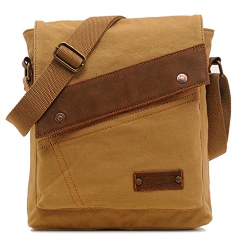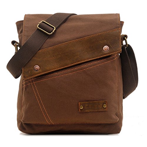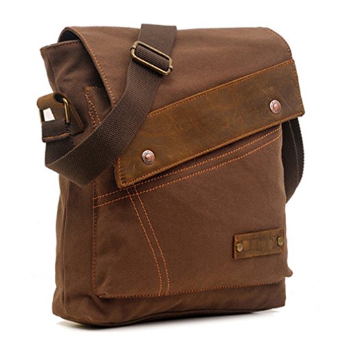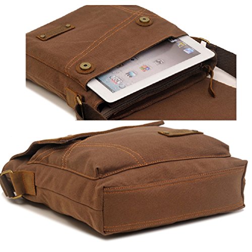 Product Description Key Features: - Made of high density washed cotton canvas and leather,classic and fashionable. - Vintage leather canvas bag for men and women.Safe flip Cover. - There are 1 zippered pocket,cellphone and card slots inside the main pocket. - The main pocket can hold up to 10" laptop. Plenty capacity design, most of your daily necessities can be loaded. - It's a very good shoulder messenger bag for working, traveling,school and daily use. - Unisex bag for both men and women.