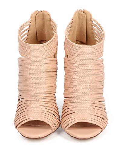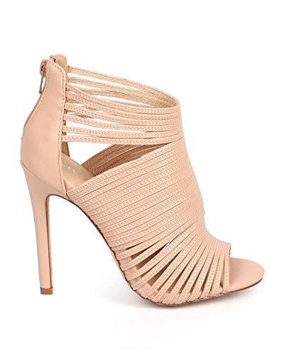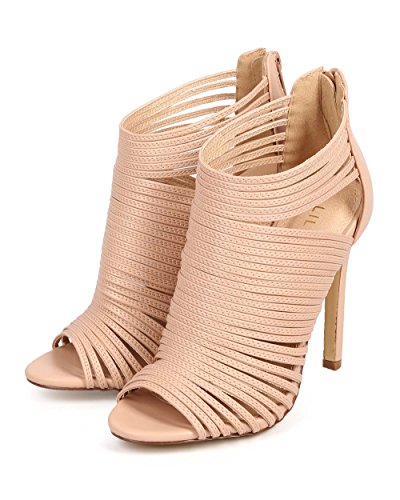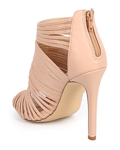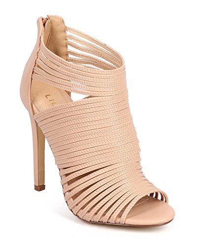 (Liliana)/Women's/Boots/DIRECT FROM USA/Liliana CF70 Women Leatherette Caged Peep Toe Cutout s tiletto Bootie - Nude