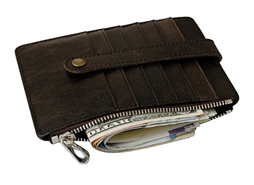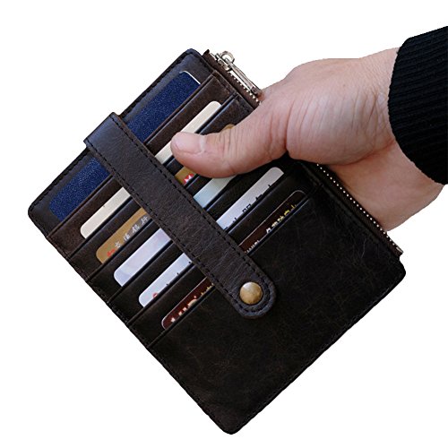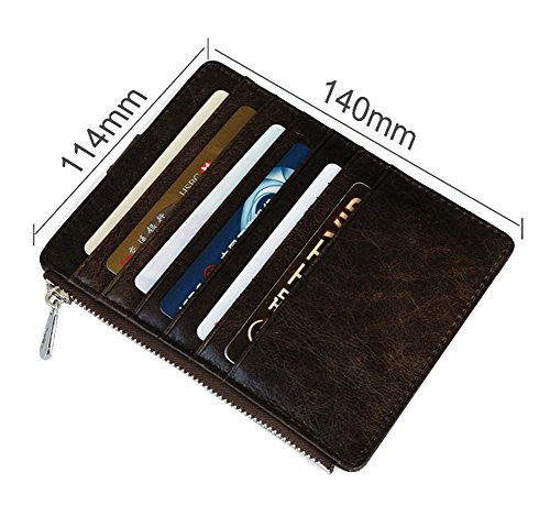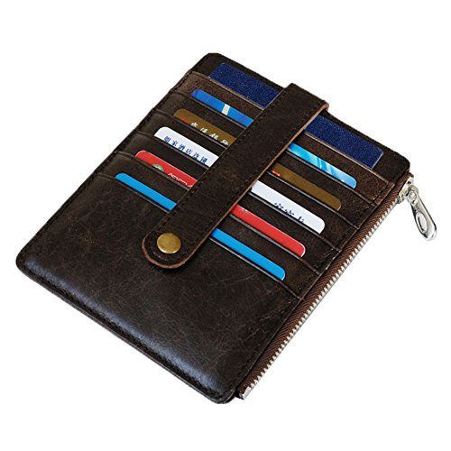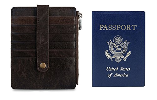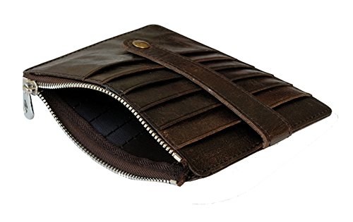 Features: Top grain cowhide leather card case, it is soft and durable, looks beautiful, feels great Small size: 11.4cm x 14.0cm/4.5inch x 5.5inch; Big capacity: can hold 10-15 cards, 2 passports and some cash, coin, change Minimalist slim style, with button snap closure, fits your front/back pocket perfectly Professional for business cards or a small wallet which carry the cards you often use Best gifts for Birthdays, Anniversaries, Christmas, Father's Day, Mother's Day, Brides, Groomsmen and other special occasions