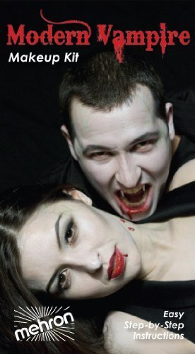 Mehron Premium Modern Vampire Character Kit contains all the professional makeup you need to turn yourself today's Modern Vampire. Includes: Lip Rouge - Crimson, Coagulated Blood, Celebré Professional Cream Makeup - Blithe Spirit, Vampire Teeth, Latex Foam Sponges, Shado-Liner - Jet Black, ProPencil Slim - Green, Hair Gel, Makeup Remover Wipes and Step-by-Step instructions.