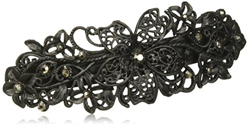 -. Title : Elle Hematite Stone and Black Filigree Barrette