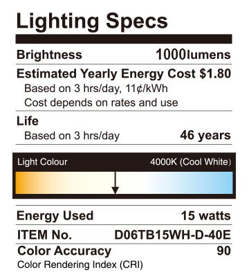 It is an ideal replacement kit for your old 100W halogen light by consuming only 15 watts, estimated yearly cost of $1.8 (based on 3hrs/day,
