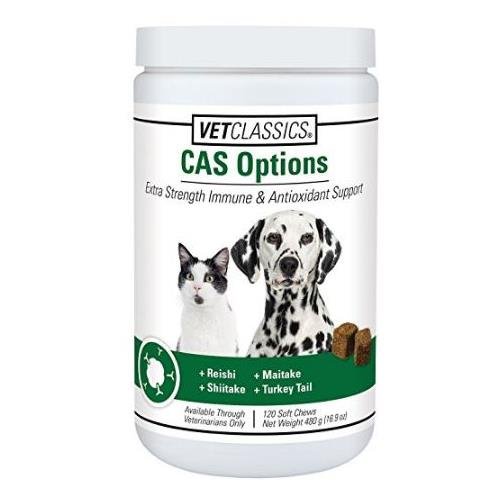 -. Binding : Misc. -. Brand : Vet Classics -. EAN : 0638455892736 -. Feature : Helps maintain normal healthy immune system. / Contains multiple sources of antioxidants. / May help provide immunostimulating proteoglycans and polysaccharides to support Natural Killer (NK) and T-helper cells. / 120ct Soft Chew (Jar), Net Wt 480g (16.9oz) / Made In the USA -. Label : Vet Classics -. Manufacturer : Vet Classics -. MPN : CCAS-120V -. PackageQuantity : 1 -. PartNumber : CCAS-120V -. ProductGroup : Pet Products -. ProductTypeName : PET_SUPPLIES -. Publisher : Vet Classics -. Studio : Vet Classics -. Title : Vet Classics Canine CAS Options For Dogs And Cats, Extra Strength Immune & Antioxidant Support Soft Chews, 120 Soft Chews -. UPC : 638455892736