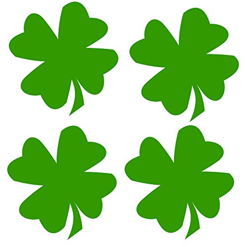 Pack of 4 Green Shamrock Four Leaf Clover Die Cut Sticker 5x5 inch Large Car Decal Sticker