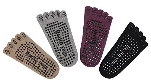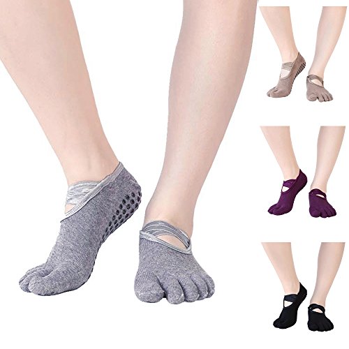 -. Feature : UNIQUE DESIGN: Cute stylish womens socks with sexy ballet slipper straps on the top which prevent feet moveing inside of the socks;Full five toe design keep each toe separated and effectively prevent the growth of bacteria. / ALL PURPOSES IN ONE: Ideal for not only yoga, but also pilates, barre, bikram and ballet dance. Perfect for home, travel, studio and hospital use too.Comes in value pack of 4 multiple colors. / ULTIMATE COMFORT: 80% breathable cotton and 20% spandex. Natural cotton absorbs sweat and gives you ultimate comfort with less bulk, giving you that barefoot feeling. / NON-SLIP GRIP: The non skid grips on the bottom are distributed evenly from heel to toe of the socks,they prevent you from skidding on wood studio floors, no more worrying about slipping. / 100% SATISFACTION GUARANTEE!- We stand by the quality of our product and guarantee you will love our YOGA socks. If you are not 100% satisfied with the purchase, you may return it to us within 60 days and receive a full refund or replacement.
