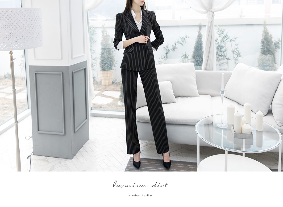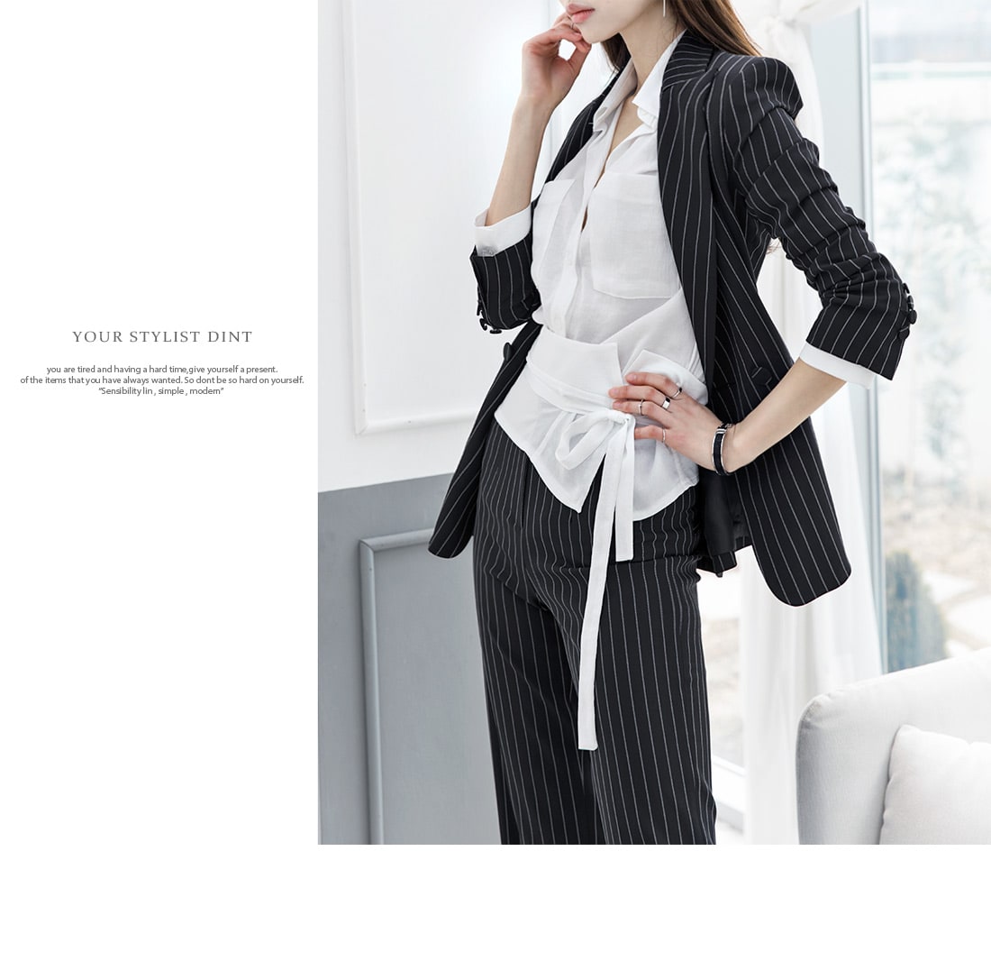 J-4863 모던 스트라이프 테일러드 자켓 Black st
